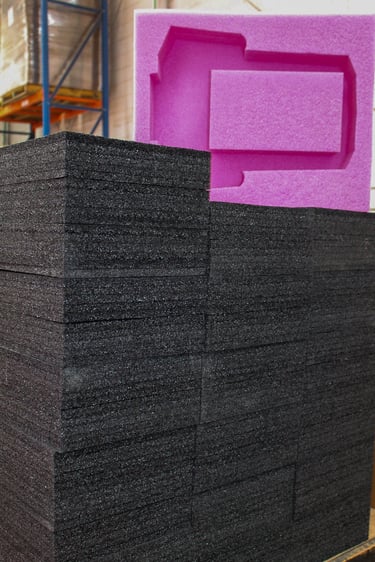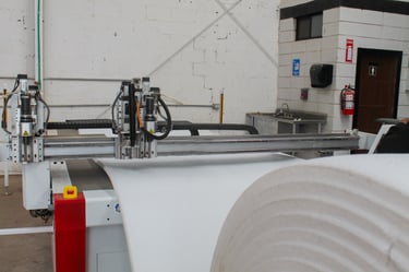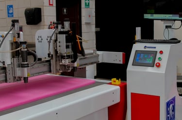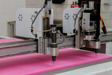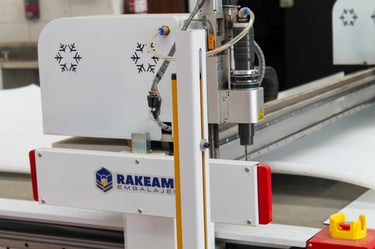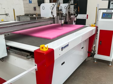 • CNC Navaja Tangencial: utilizada para el corte de foam, creando interiores a la medida para cajas y embalajes, garantizando protección y ajuste perfecto de cada pieza.
